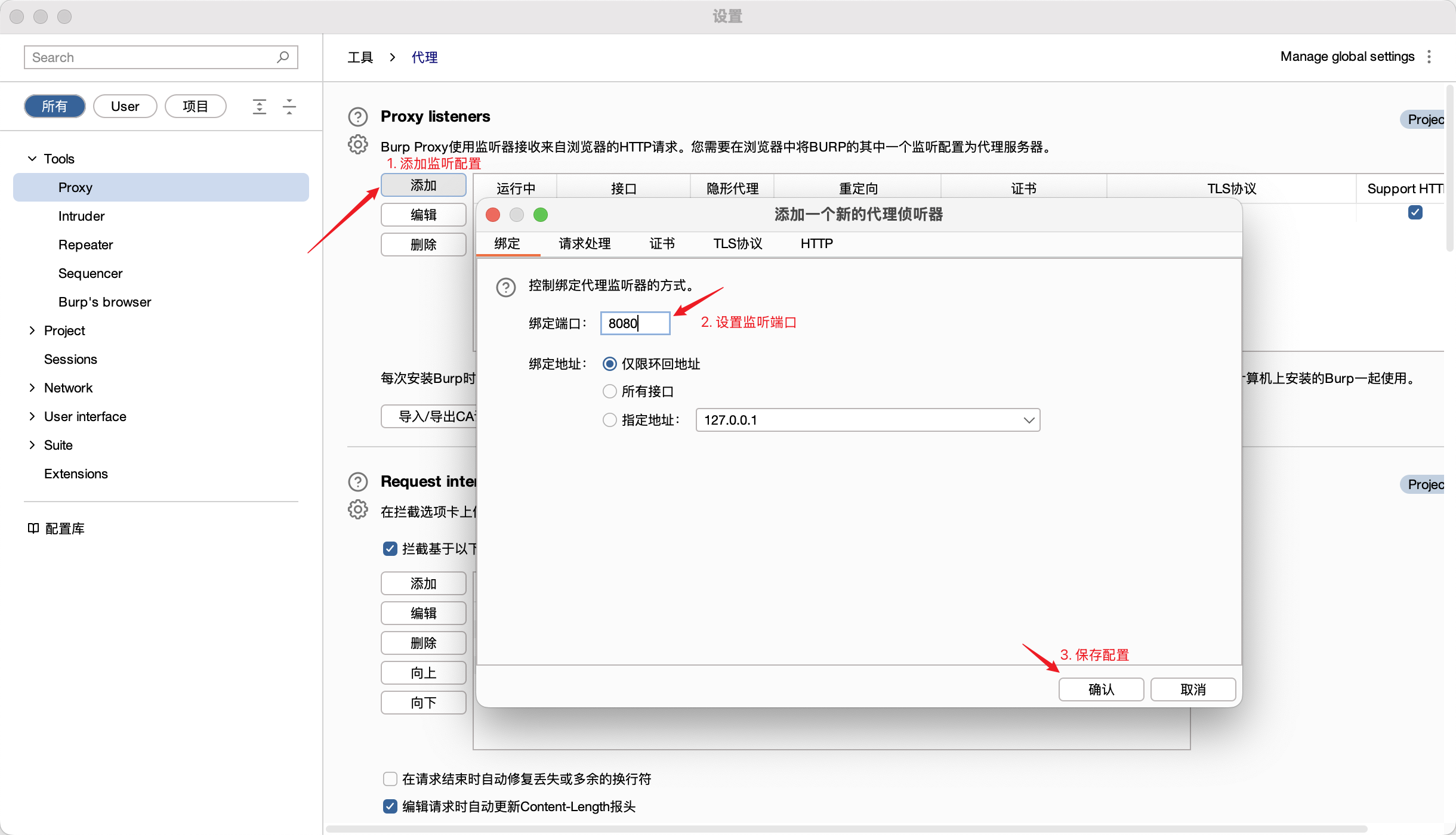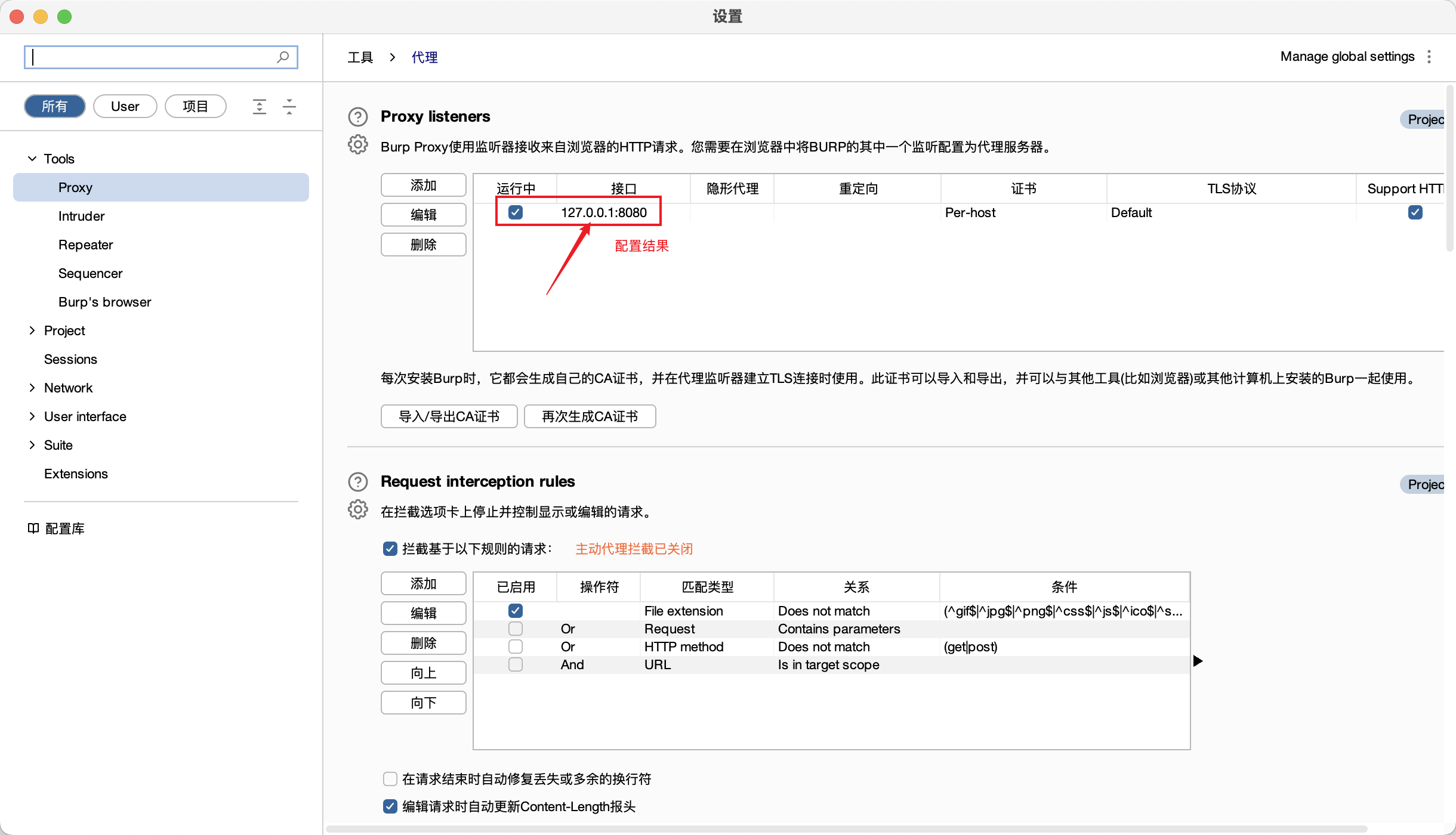 1. 配置 Burpsuite 代理监听端口